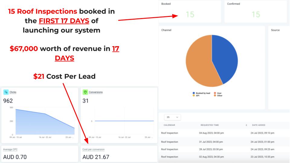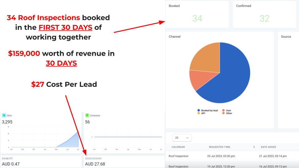 We guarantee you at least 15 qualified roof inspection booked in your calendar, fully done-for-you (you don't have to lift a finger!). If we don't deliver on our guarantee, then we will send you a full refund for wasting your time.